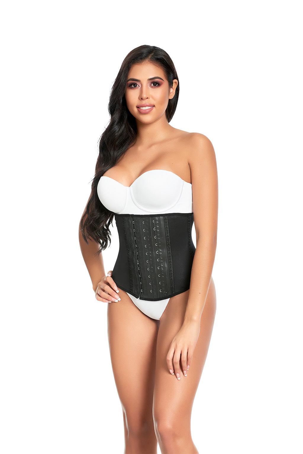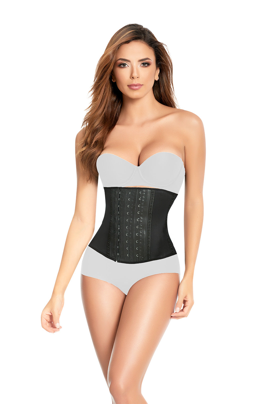 Classic latex waist trainer; flexible boning for posture; 2 row hooks and eye clousure